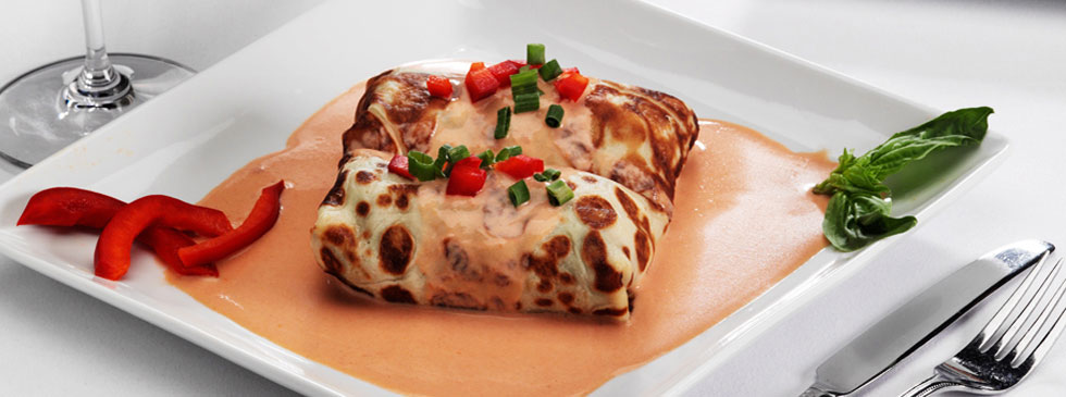 OIC’s version of this traditional Italian favorite has been a must-try for guests for years. Two soft crepes are filled with perfectly sautéed chicken, spinach, and mushrooms, then topped with a delicious tomato cream sauce.